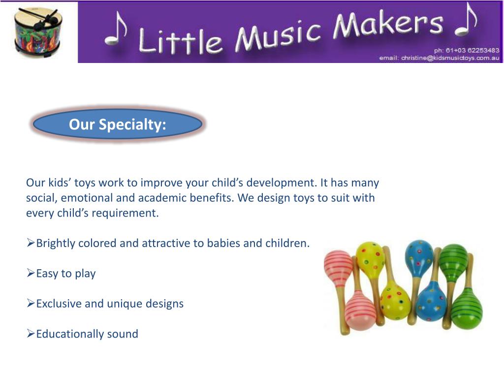 Call us - +610362253483 Mail Us: christine@kidsmusictoys.com.au Website: http://www.littlemusicmakers.com.au Fill all the required details to know more information