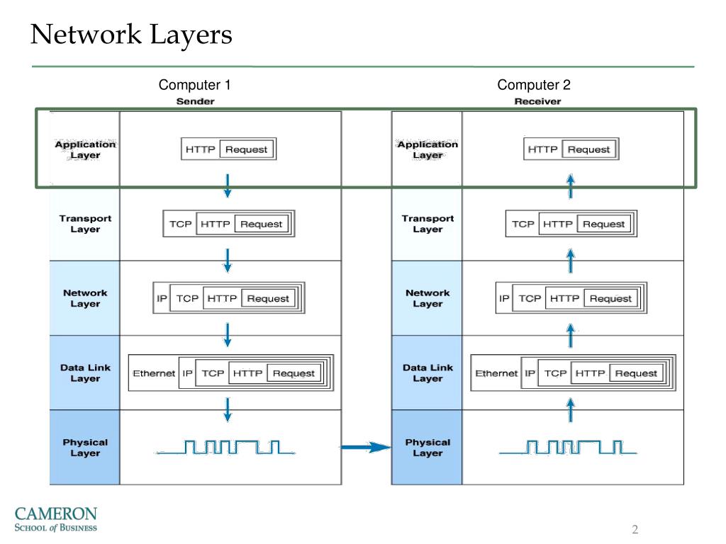 Recap of Layers Application, Data Link and Physical. S305 – Network Infrastructure. Network Layers. Computer 1. Computer 2. 2. Application Layer. Applications (e.g., email, web, word processing). Application Layer. Transport Layer. Network Layer.
