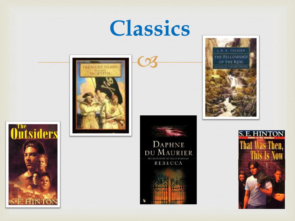 Or choose a great author… Allende, Avi, Christopher, Clancy, Cooney, Crutcher, Cushman, DeFelice, Dessen, Draper, Duncan, Fleischman, Flake, Fox, Grisham, Hesse, Hobbs, Lipsyte, Lupica, Myers, Park, Paterson, Philbrick, Reeve, Rinaldi, Riordan, Sacher, Shusterman, Soto, Speare, Spinelli, Strasser, Taylor, Tolkien, Wells, Yolen, Yep, Zindel…