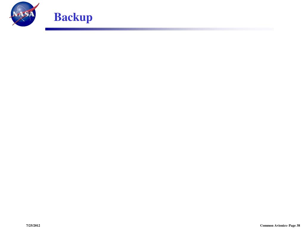 Facets of Common Avionics • Software • NASA cFE/CFS example of a component software architecture • Hardware • SpaceAGE bus (intra-box interface definition) • Modular • Standalone • Scalable • Interface Control Document definition • Maintain reasonable flexibility with these area Examples: • Software – allow different operation systems • Hardware – allow different protocols • Electronic Data Sheet (EDS) – work with different software architecture