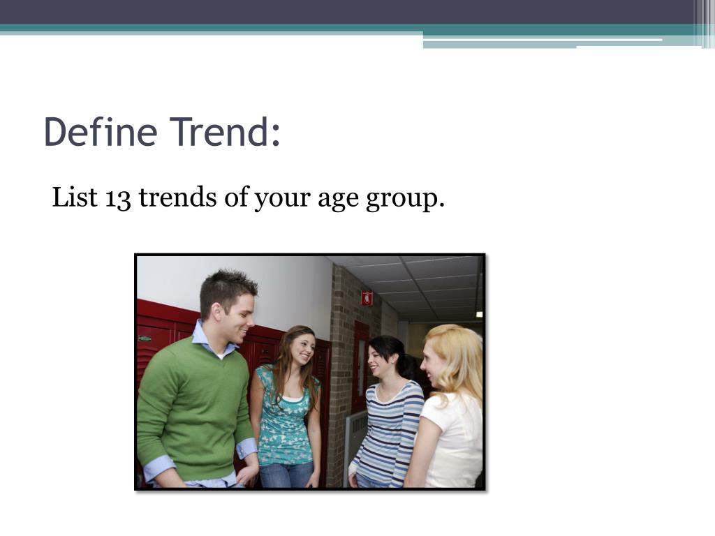 Define Trend: List 13 trends of your age group.