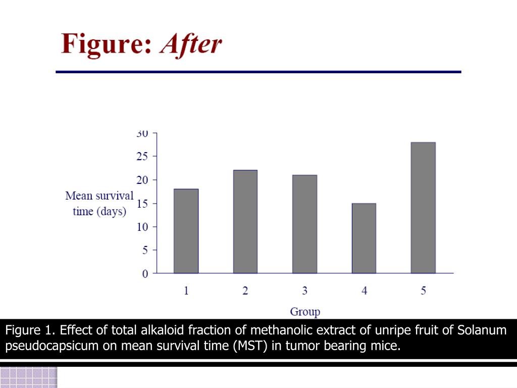 Figure 1. Effect of total alkaloid fraction of methanolic extract of unripe fruit of Solanum pseudocapsicum on mean survival time (MST) in tumor bearing mice.