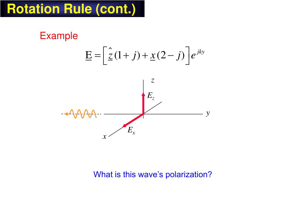 Rotation Rule (cont.) z Ez y Ex x Example (cont.) LHEP or LHCP Note: and (so this is not LHCP)