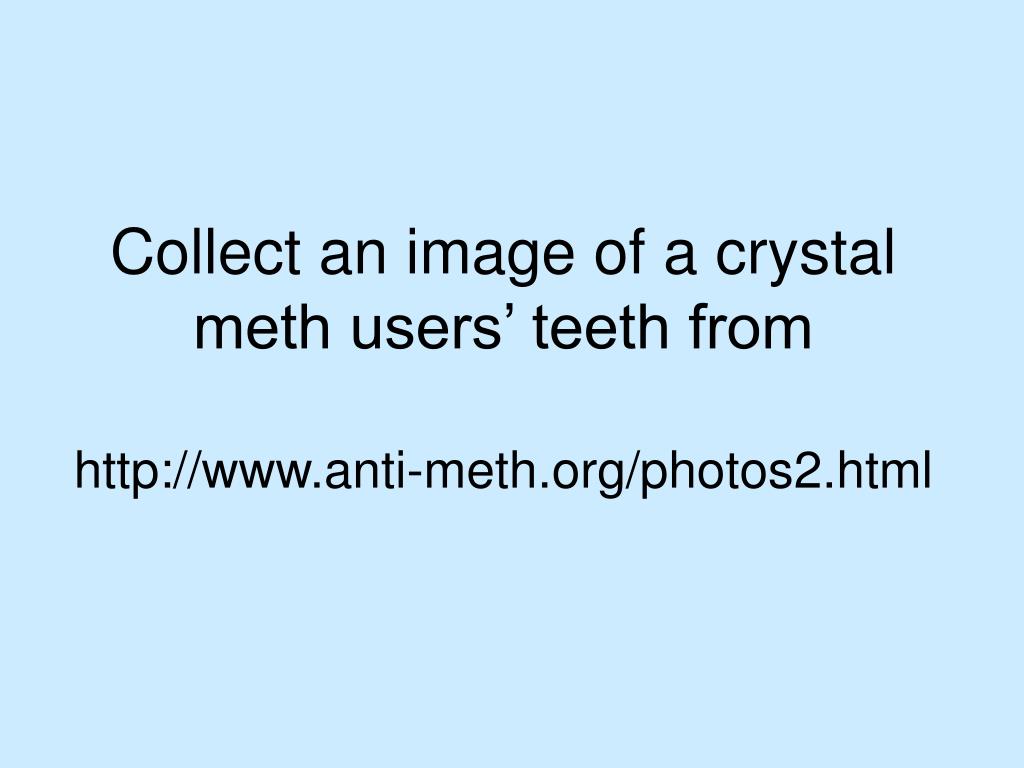 Collect an image of a crystal meth users’ teeth fromhttp://www.anti-meth.org/photos2.html