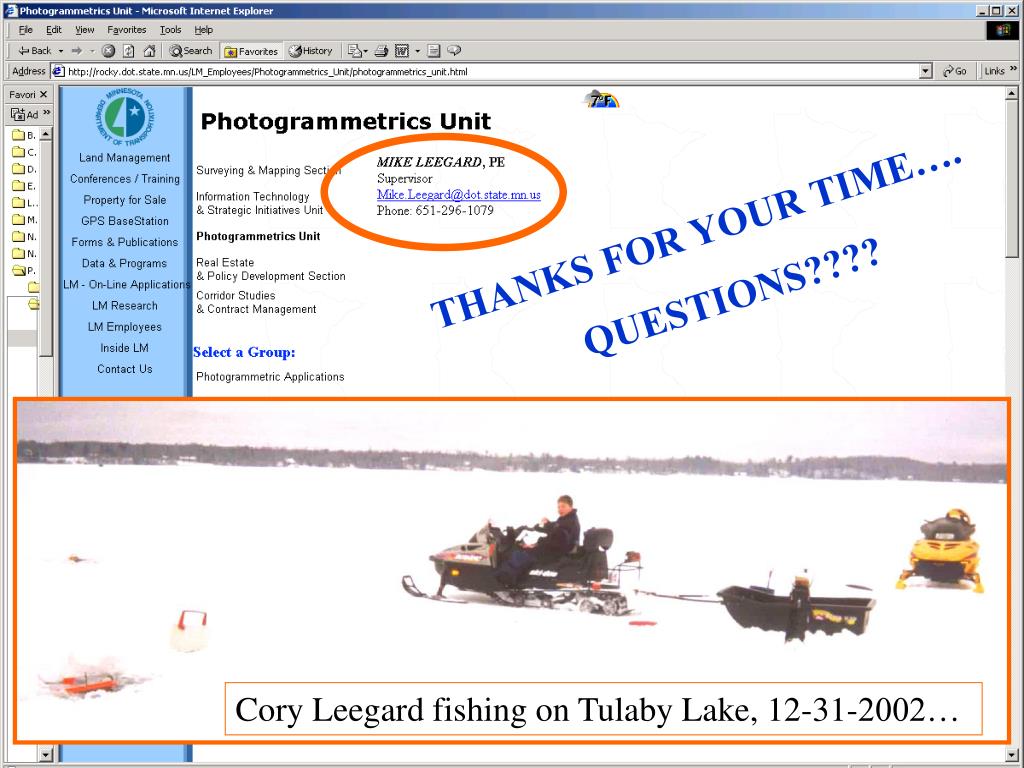 I will post my presentation here……… http://rocky.dot.state.mn.us/Inside_LM/Photogrammetrics/Presentations/presentations.html