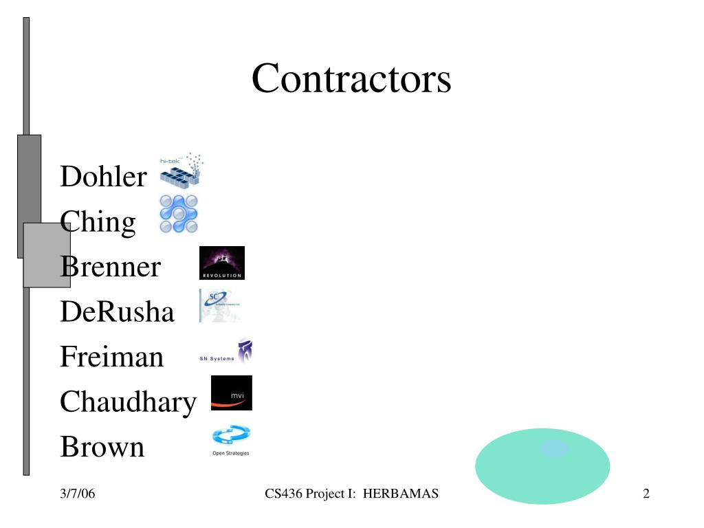 Dohler Ching Brenner DeRusha Freiman Chaudhary Brown Contractors CS436 Project I: HERBAMAS