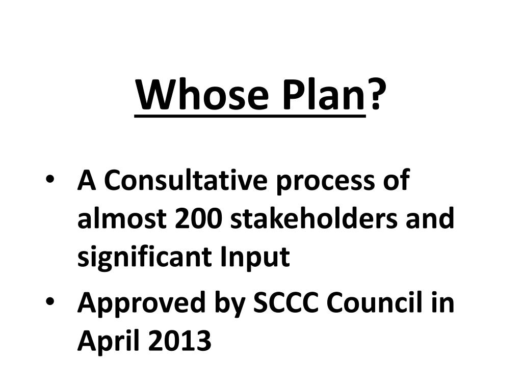 Whose Plan? A Consultative process of almost 200 stakeholders and significant Input Approved by SCCC Council in April 2013