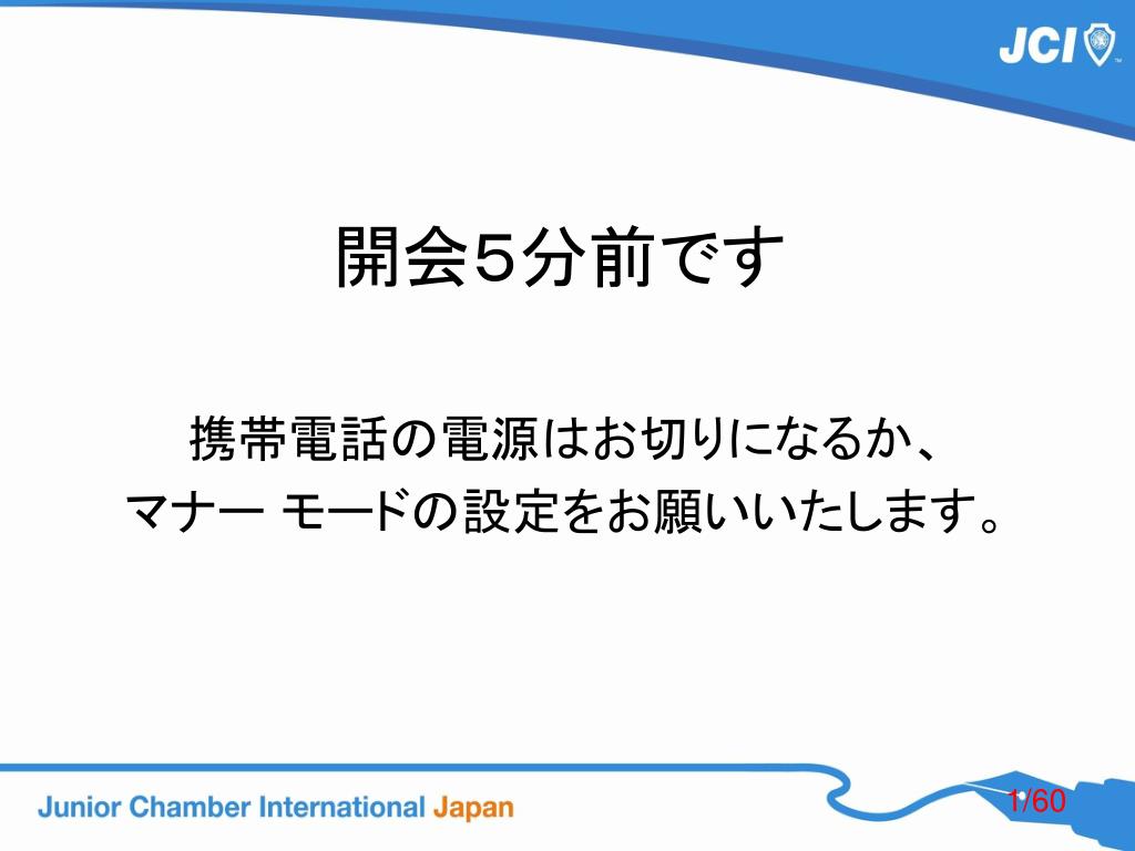 開会5分前です 携帯電話の電源はお切りになるか、 マナー モードの設定をお願いいたします。