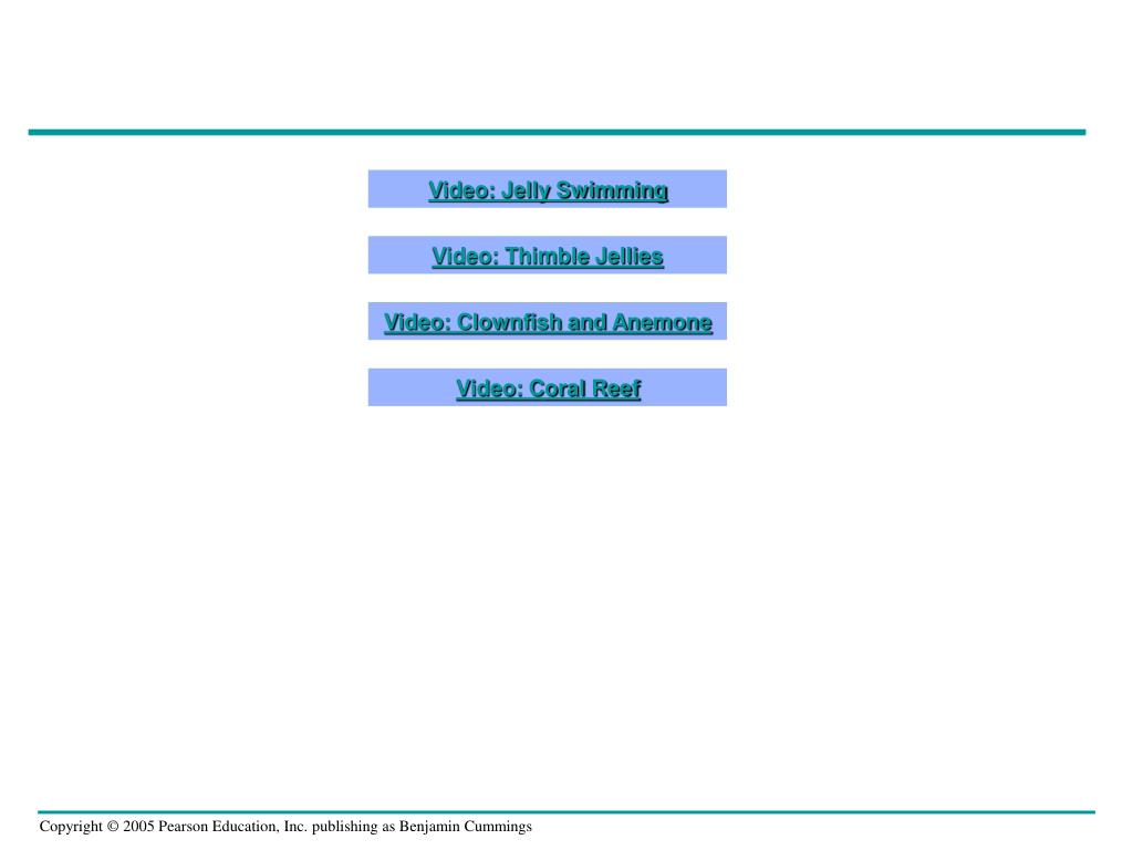 LE 33-7 Scyphozoans (jellies) Cubozoan (sea wasp) Anthozoan (sea anemone) Hydrozoans