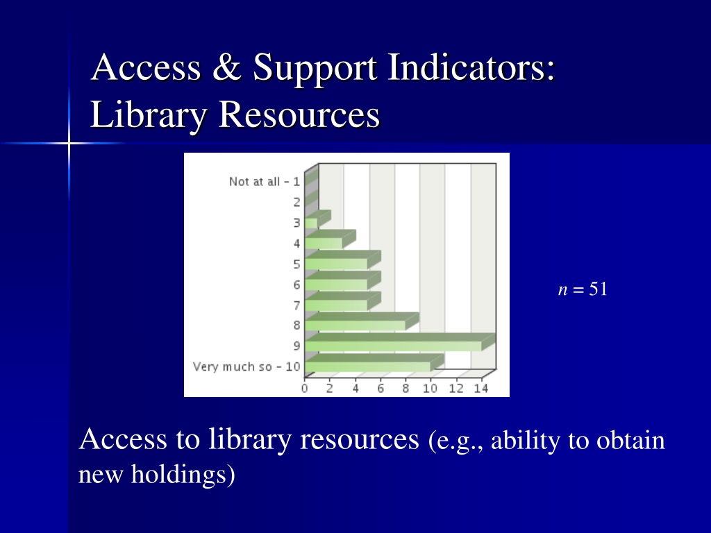 Access & Support Indicators: Library Resources n = 51 Access to library resources (e.g., ability to obtain new holdings)