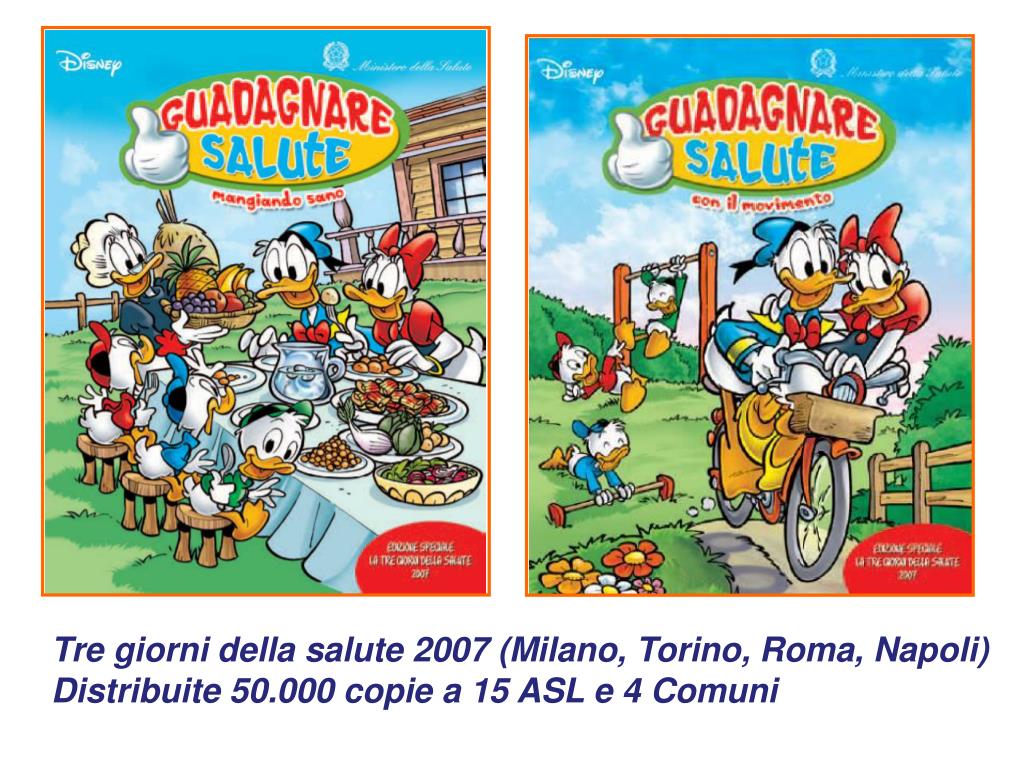 Tre giorni della salute 2007 (Milano, Torino, Roma, Napoli) Distribuite 50.000 copie a 15 ASL e 4 Comuni