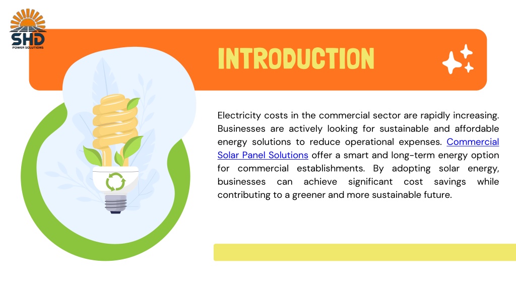INTRODUCTION Electricity costs in the commercial sector are rapidly increasing. Businesses are actively looking for sustainable and affordable energy solutions to reduce operational expenses. Commercial Solar Panel Solutions offer a smart and long-term energy option for commercial establishments. By adopting solar energy, businesses can achieve significant cost savings while contributing to a greener and more sustainable future.