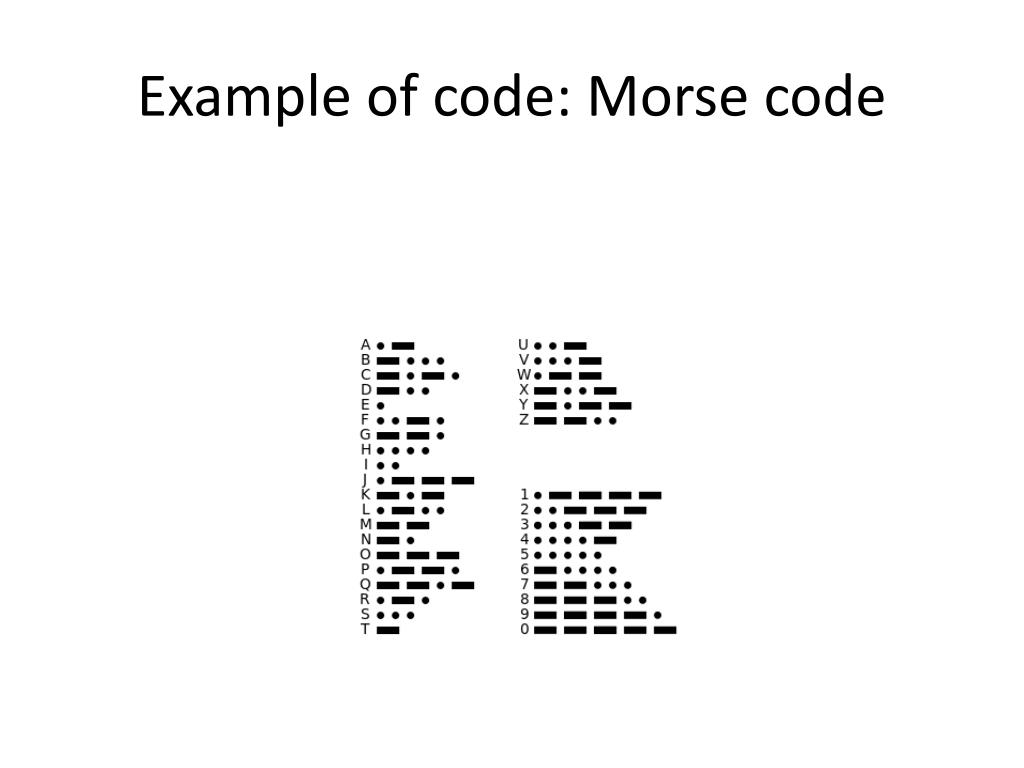 For discussion • In what circumstances would one want to use Morse code? • For example: • Is Morse code suitable for storing data? • Is Morse code suitable for protecting data confidentiality?