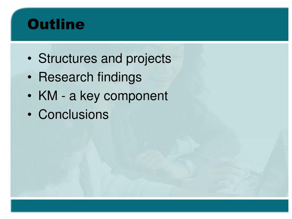 Outline • Structures and projects • Research findings • KM - a key component • Conclusions