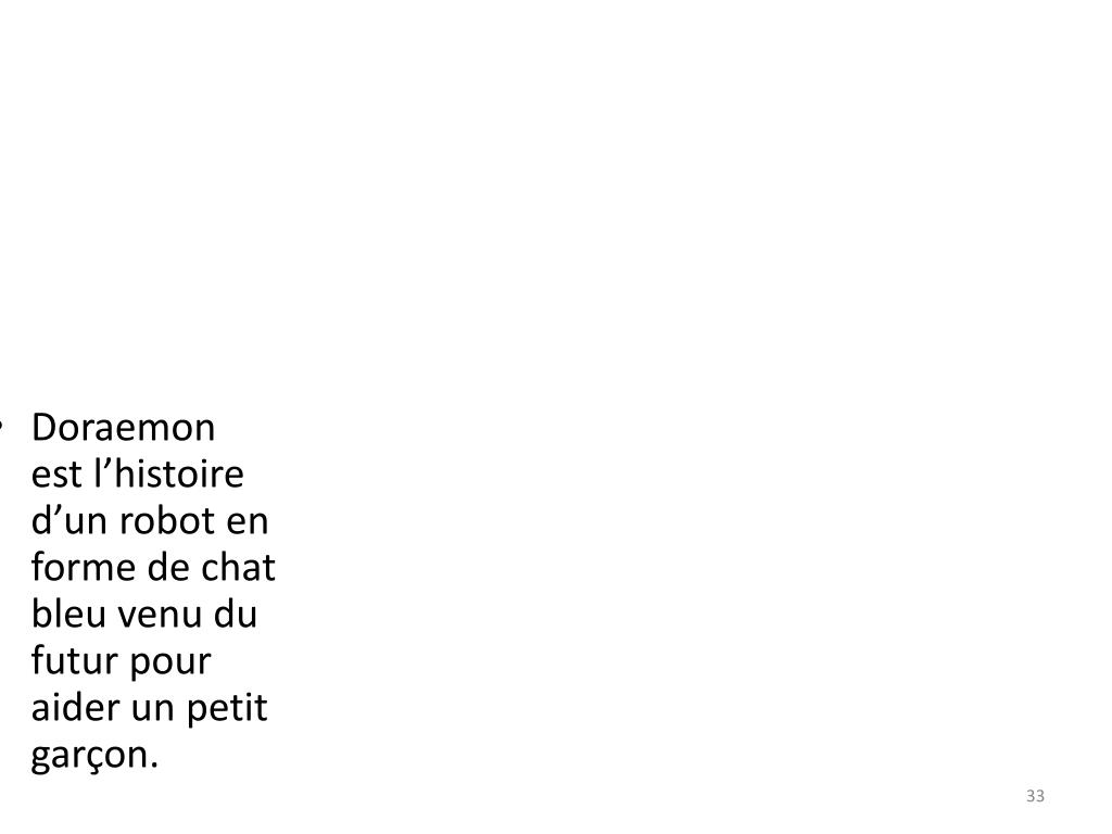 Doraemon est l’histoire d’un robot en forme de chat bleu venu du futur pour aider un petit garçon.