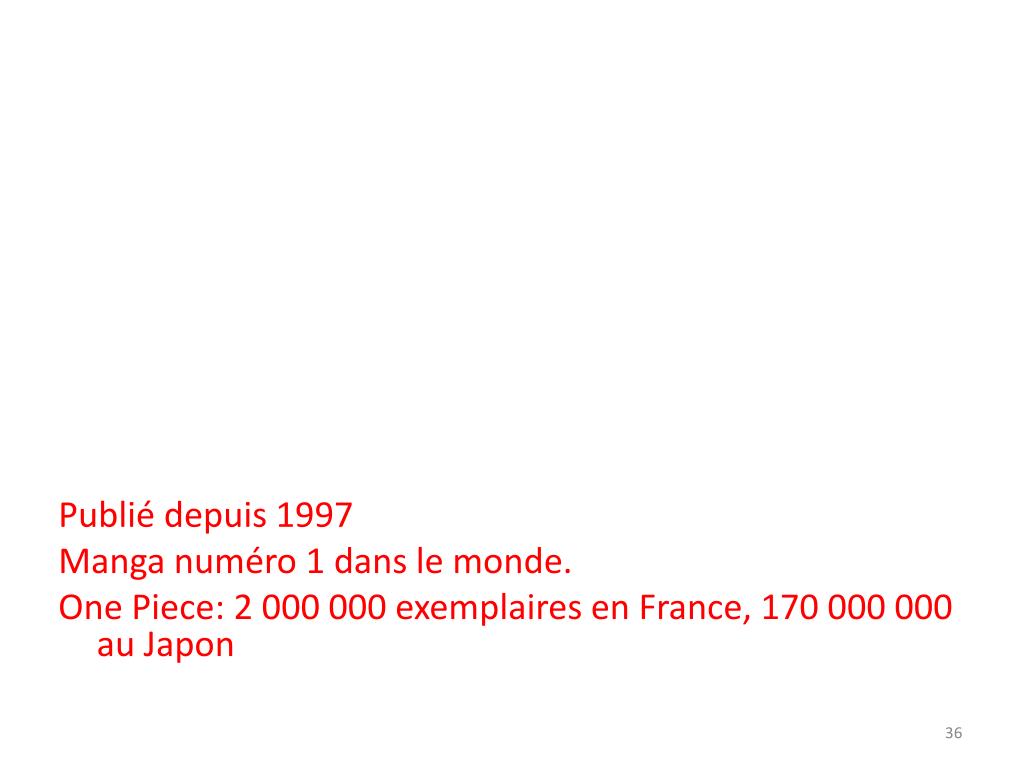 Publié depuis 1997 Manga numéro 1 dans le monde. One Piece: 2 000 000 exemplaires en France, 170 000 000 au Japon