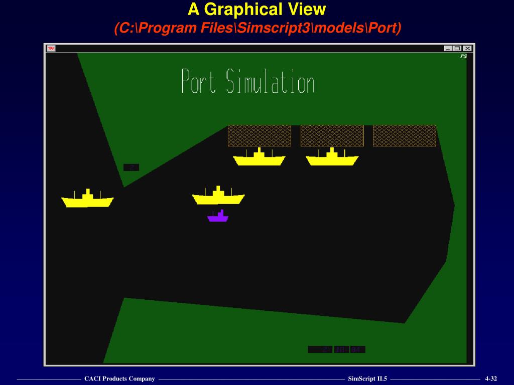 A Graphical View (C:\Program Files\Simscript3\models\Port) —————————— CACI Products Company ————————————————————————————— SimScript II.5 —————————————— 4-32