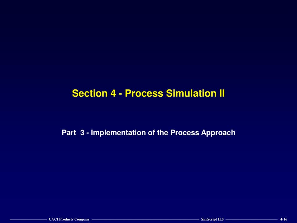 Section 4 - Process Simulation II Part 3 - Implementation of the Process Approach —————————— CACI Products Company ————————————————————————————— SimScript II.5 —————————————— 4-16