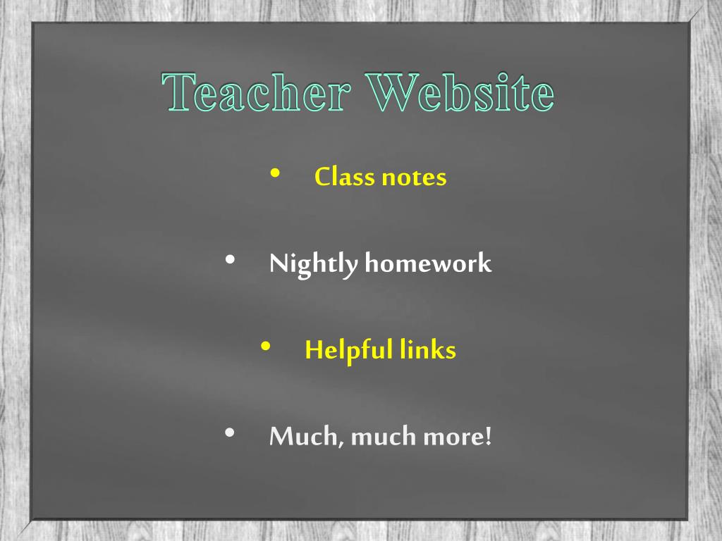 Teacher Website • Class notes • Nightly homework • Helpful links • Much, much more!