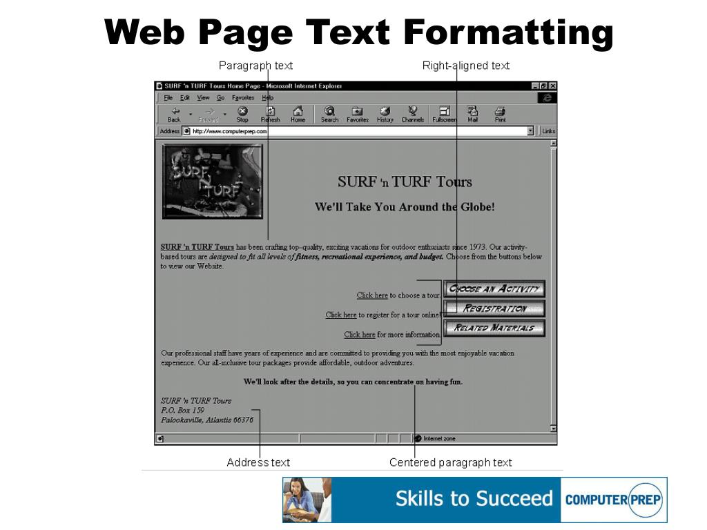 Lesson 3: Placing Text on the Page • Format paragraphs • Create line breaks • Format addresses • Create block quotes • Use the Preformat tag