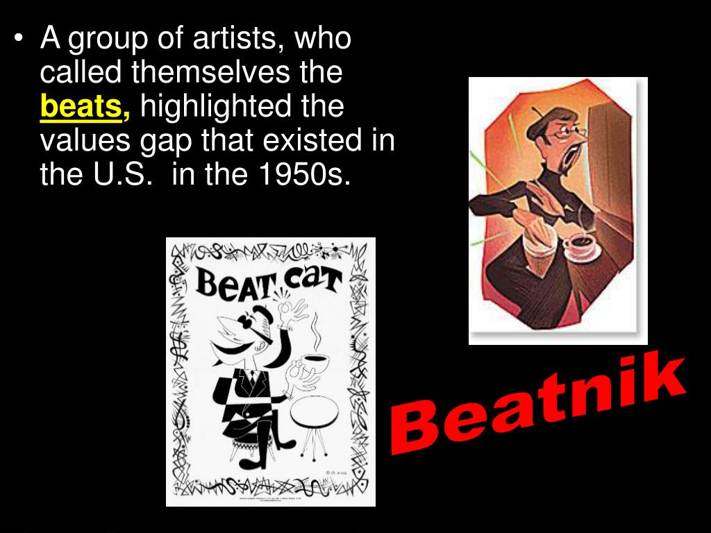 A group of artists, who called themselves the beats, highlighted the values gap that existed in the U.S. in the 1950s. Beatnik Section 3-11