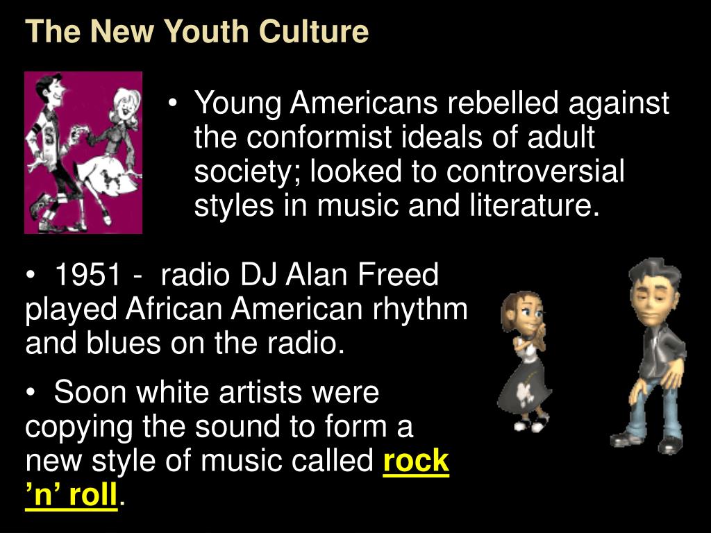 The New Youth Culture • Young Americans rebelled against the conformist ideals of adult society; looked to controversial styles in music and literature. • 1951 - radio DJ Alan Freed played African American rhythm and blues on the radio. • Soon white artists were copying the sound to form a new style of music called rock ’n’ roll. Section 3-9