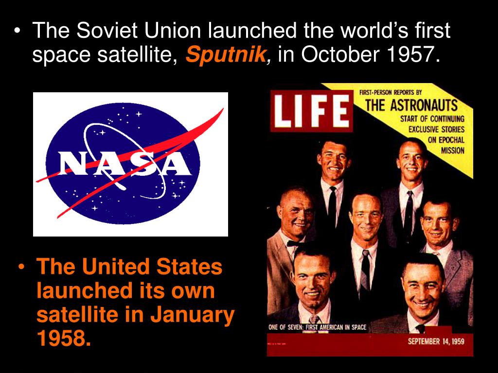 The Soviet Union launched the world’s first space satellite, Sputnik, in October 1957. • The United States launched its own satellite in January 1958.