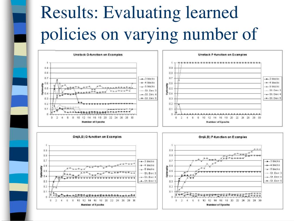 Results: Fixed number of blocks Accuracy: percentage of correctly classified (s,a) pairs (optimal-non-optimal) Accuracy of random policies