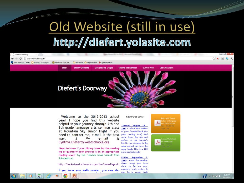 What will you find on the website(s)? • Copy of rules and expectations • Due dates for important assignments • Copy of quarterly book project rubric(S) & Copy of quarterly book pages paper • RESOURCES FOR Assignments that were not able to be completed in class