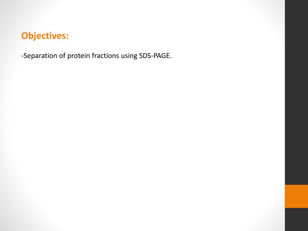 Objectives: -Separation of protein fractions using SDS-PAGE.