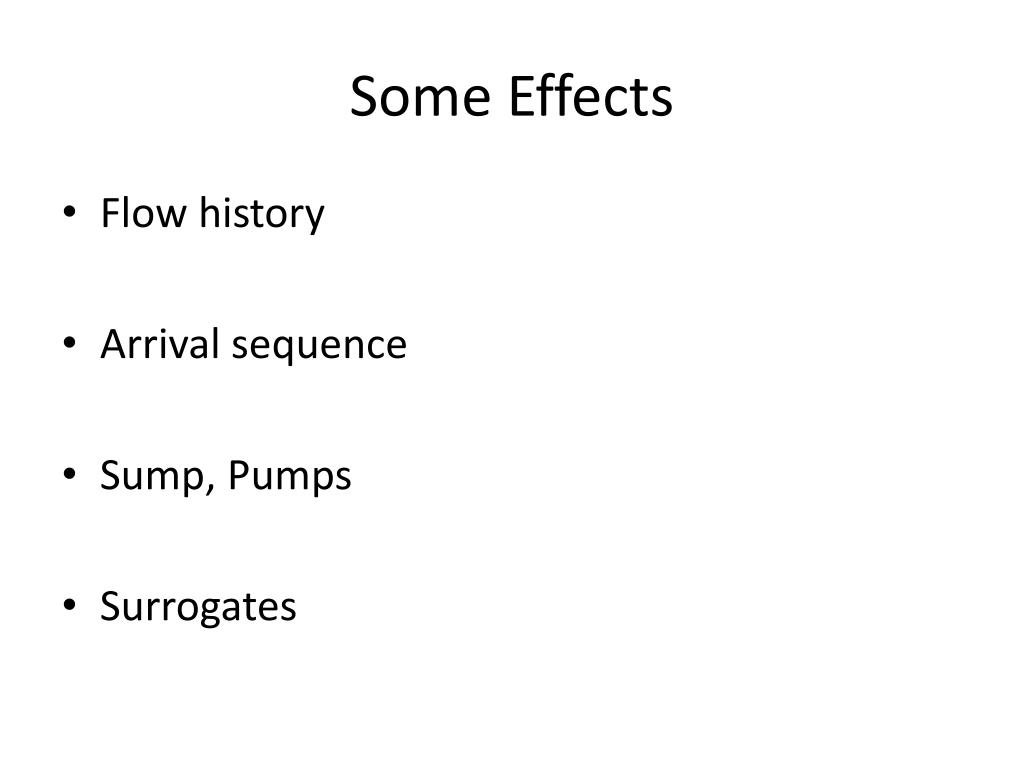 Some Effects • Flow history • Arrival sequence • Sump, Pumps • Surrogates