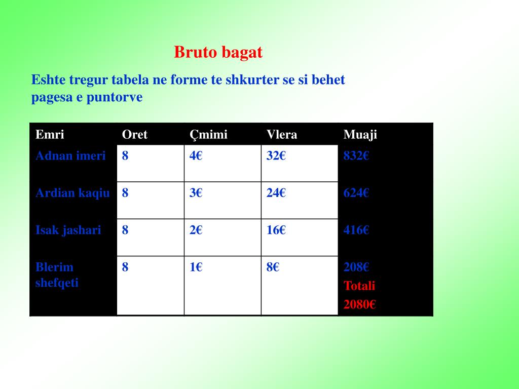 Brutobagat Eshtetregurtabela ne formeteshkurter se sibehetpagesa e puntorve
