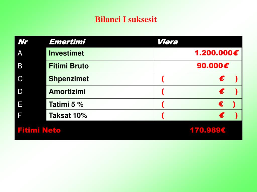 Te dhenatfinancjare Brutobagat Armotizimi Bilanciisuksesit Te cilatpoipershkruajme me poshte
