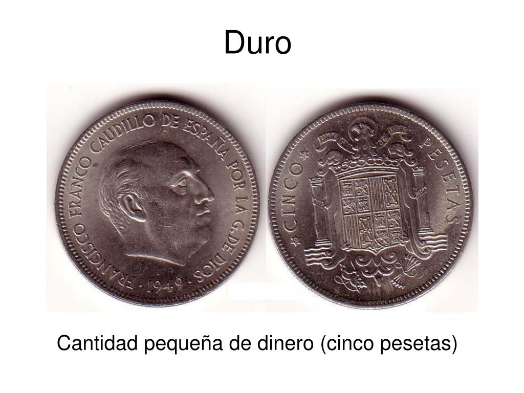 Duro Cantidad pequeña de dinero (cinco pesetas)
