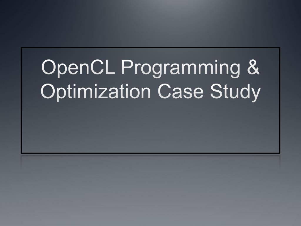 OpenCL Programming & Optimization Case Study. Instructor Notes. Lecture discusses parallel implementation of a simple embarrassingly parallel nbody algorithm