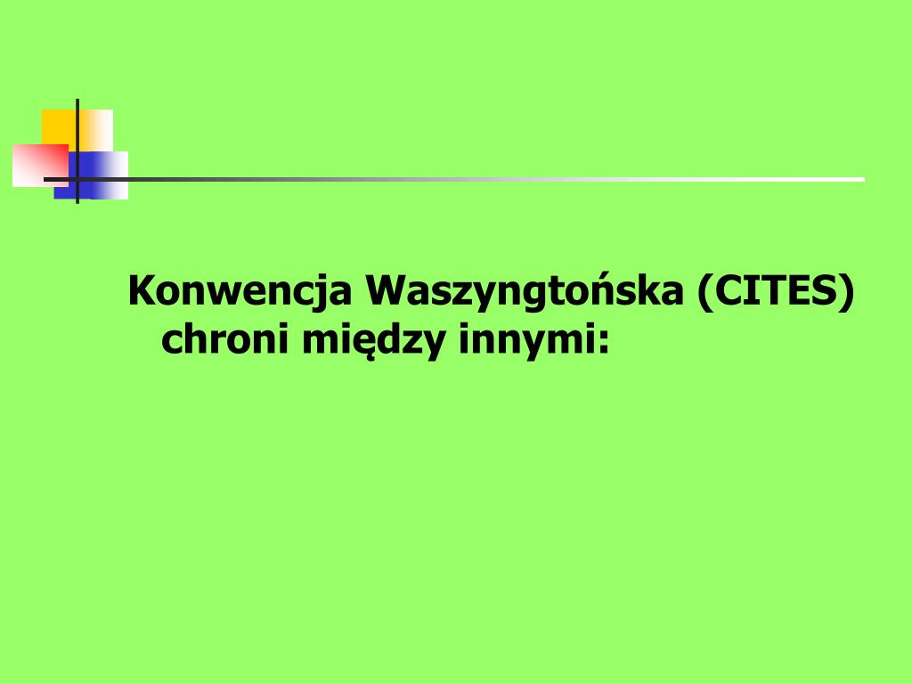 Konwencja Waszyngtońska • W dniu 3 marca 1973 roku w Waszyngtonie została sporządzona Konwencja o międzynarodowym handlu dzikimi zwierzętami i roślinami gatunków zagrożonych wyginięciem, zwana jest Konwencją Waszyngtońską lub w skrócie CITES.
