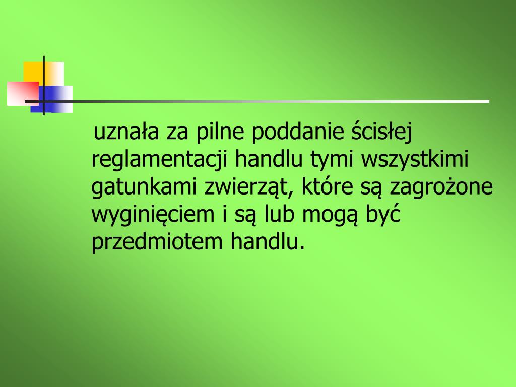 uznała za pilne poddanie ścisłej reglamentacji handlu tymi wszystkimi gatunkami zwierząt, które są zagrożone wyginięciem i są lub mogą być przedmiotem handlu.