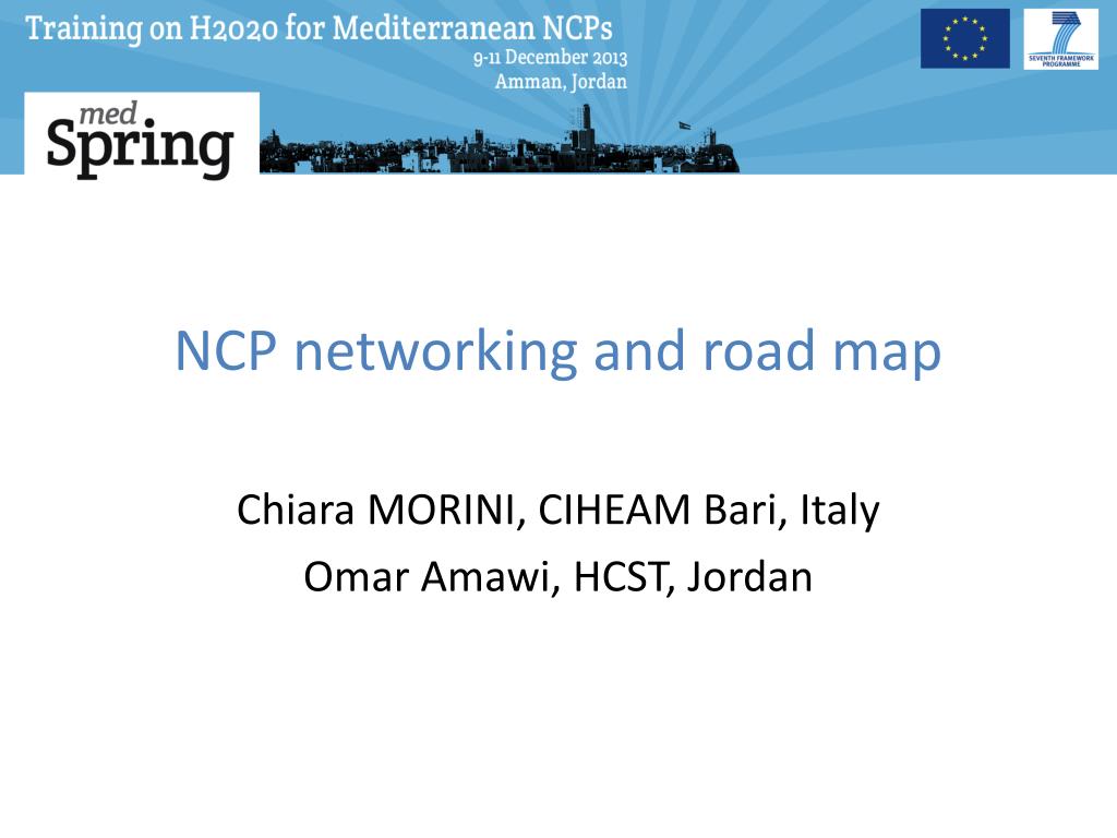 NCP networking and road map. Chiara MORINI, CIHEAM Bari, Italy Omar Amawi, HCST, Jordan. How does it work?. The “ NCP networking and roadmap ” session is organized as follows: It is a moderated discussion