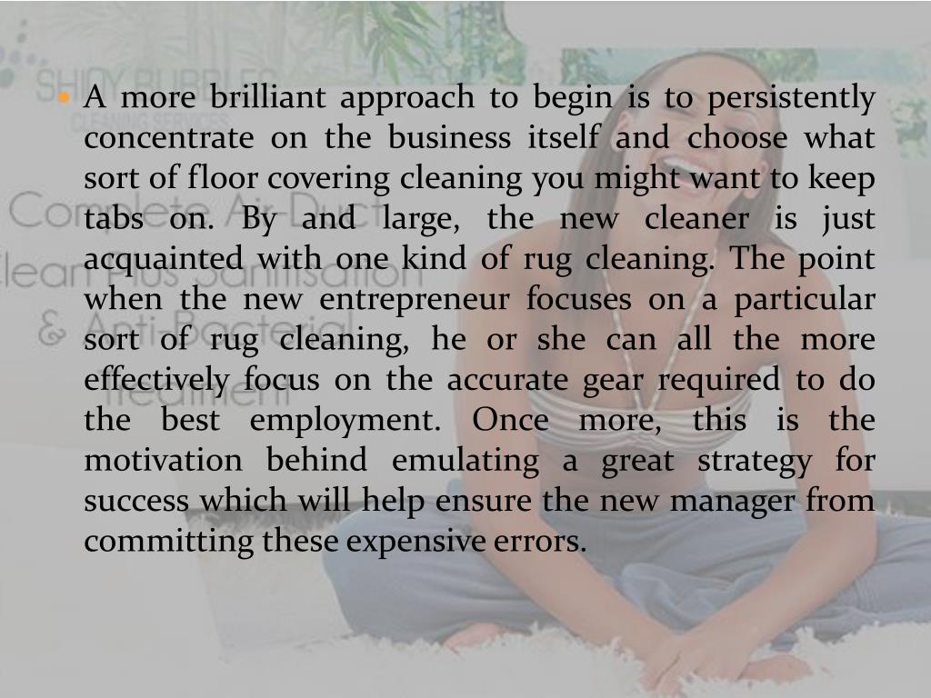 A more brilliant approach to begin is to persistently concentrate on the business itself and choose what sort of floor covering cleaning you might want to keep tabs on. By and large, the new cleaner is just acquainted with one kind of rug cleaning. The point when the new entrepreneur focuses on a particular sort of rug cleaning, he or she can all the more effectively focus on the accurate gear required to do the best employment. Once more, this is the motivation behind emulating a great strategy for success which will help ensure the new manager from committing these expensive errors.