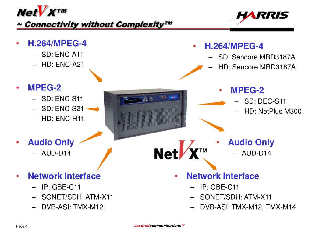 Harris Corporation Broadcast Communications Division. Net V X™ ~ Agenda. Value Proposition NetVX Overview SYS-350 Chassis 7.2 Feature Set Applicable Markets Typical Packages per Market Product Availability H.264 Demo’s Marketing Initiatives Upcoming Features Competitors