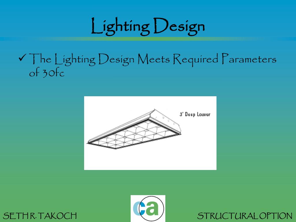 Lighting Design • The Lighting Design Meets Required Parameters of 30fc