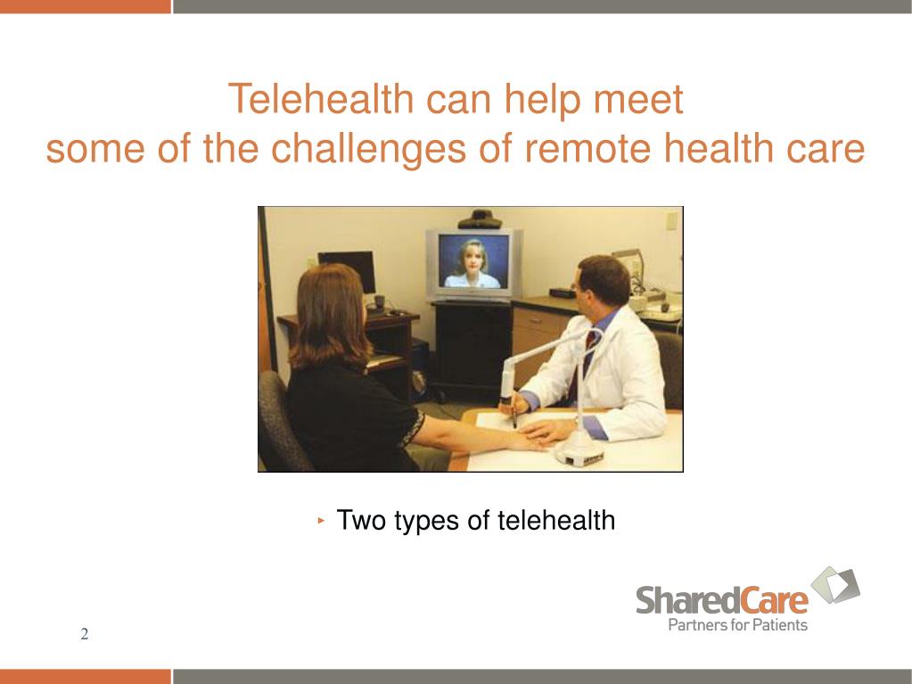 Telehealth can help meet some of the challenges of remote health care • Two types of telehealth