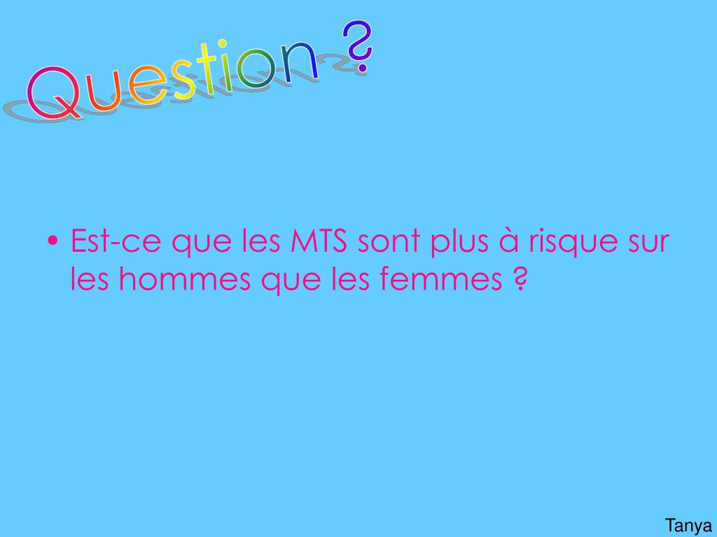 Question ? • Est-ce que les MTS sont plus à risque sur les hommes que les femmes ? Tanya