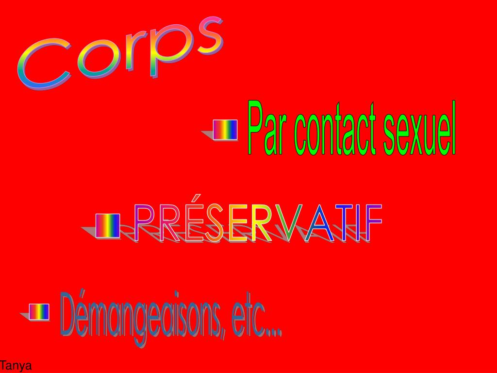 Corps Par contact sexuel . PRÉSERVATIF . Démangeaisons, etc... . Tanya