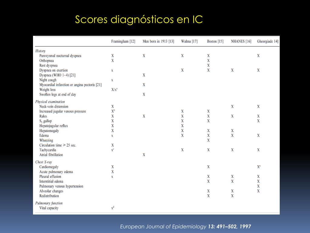 Scores diagnósticos en IC European Journal of Epidemiology 13: 491–502, 1997