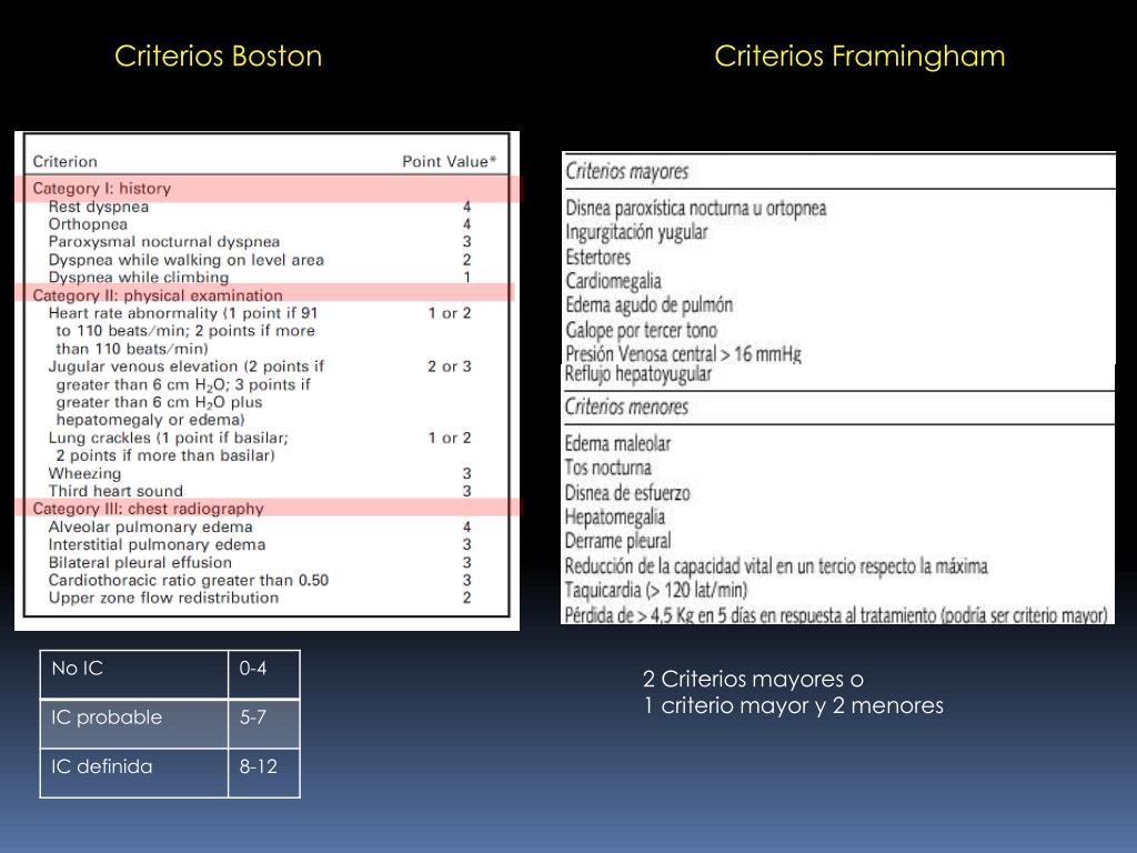 Criterios Boston Criterios Framingham 2 Criterios mayores o 1 criterio mayor y 2 menores