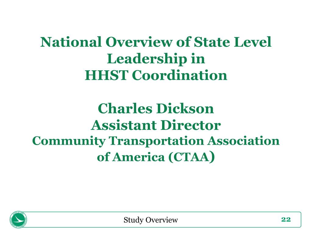 National Overview of State Level Leadership inHHST CoordinationCharles DicksonAssistant DirectorCommunity Transportation Associationof America (CTAA) Study Overview
