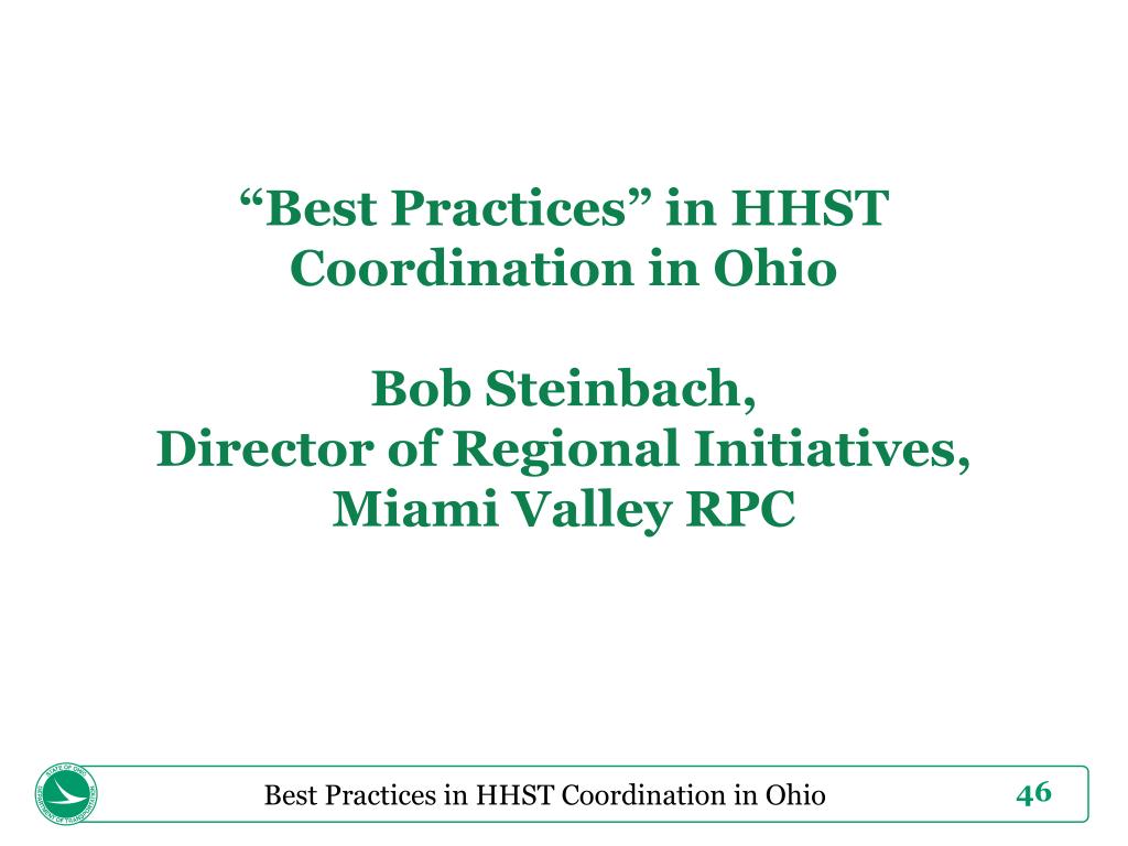 “Best Practices” in HHST Coordination in OhioBob Steinbach,Director of Regional Initiatives,Miami Valley RPC Best Practices in HHST Coordination in Ohio