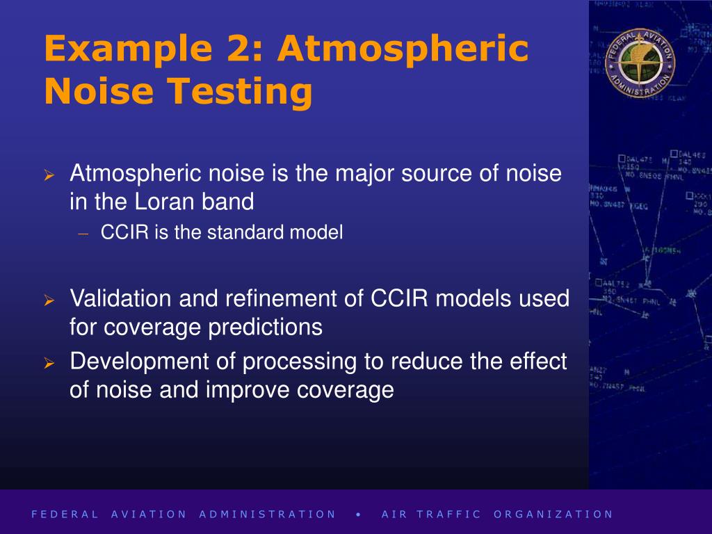 Example 2: Atmospheric Noise Testing • Atmospheric noise is the major source of noise in the Loran band • CCIR is the standard model • Validation and refinement of CCIR models used for coverage predictions • Development of processing to reduce the effect of noise and improve coverage
