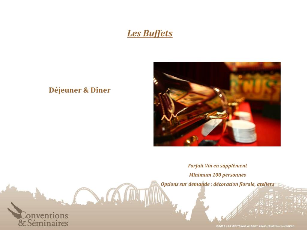 Les Buffets Déjeuner & Dîner Forfait Vin en supplément Minimum 100 personnes Options sur demande : décoration florale, ateliers